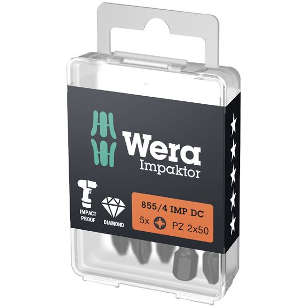 WERA ヴェラ 5本入 差込6.35mm ダイヤモンドコーティング インパクト用 ポジドライバービット 刃先サイズPZ2 全長50mm 057661 送料無料
