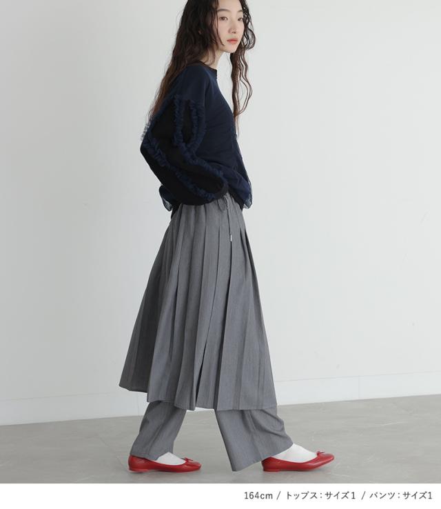 23日最大1200円クーポン 【送料無料】『チュールレイヤーニット×プリーツスカート×ストレートパンツセットコーデ2点SET』【メール便不可】【50】[2点コーデセット 2024 レディース ニット 長袖 トップス セーター パンツ スカートボトムス]