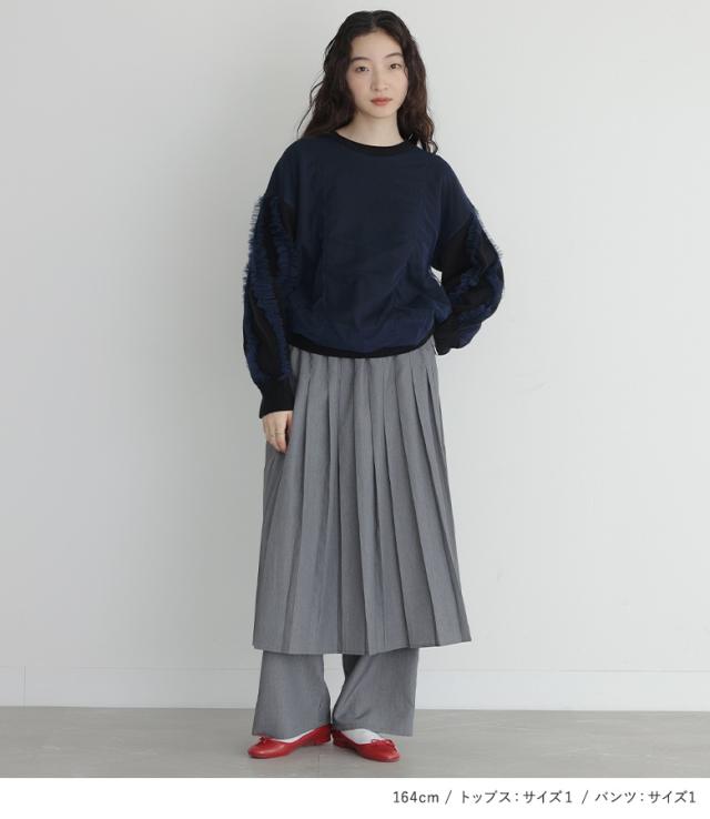 ニット 長袖 レディース トップス セーター チュール 異素材 ギャザー ショート丈 ざっくりニット レイヤードニット プルオーバー クルーネック ショート丈ニット ミディ丈 ミドル丈 ドロップショルダー フリル 配色 無地 チュールテープ 異素材MIX ドッキング シースルー シアー 透け感 レイヤード 重ね着 おうちで洗える 秋 冬 カジュアル レトロ クラシカル シンプル ナチュラル キレカジ フェミニン 上品 きれいめ Sサイズ Mサイズ Lサイズ LLサイズ 3Lサイズ XLサイズ ぽっちゃり 体型カバー 大きいサイズ プラスサイズ 10代 20代 30代 40代 50代 60代 おしゃれ お洒落可愛い パンツ スカート ボトムス ストレートパンツ プリーツスカート セット ロングパンツ レイヤードパンツ スラックス ミモレスカート レイヤードスカート ミモレ丈 ロング丈 フルレングス 10分丈 リボン ウエストゴム ポケット モード グレー ブラック 202411 2点セット プレゼント 福袋 コーディネートセット コーデセット 中身が見える福袋 上下セット ギフトセット[ID]14cm0xq