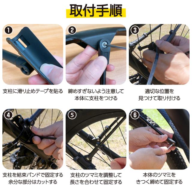 支柱はベルトを結んで自転車に固定します。(結束バンドが4本付属しています。)
