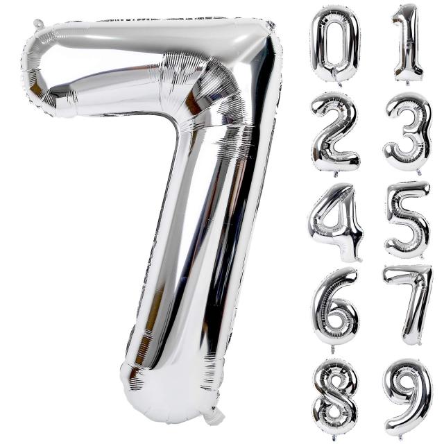 Lausatek バルーン アルミ風船 シルバー 数字7 ナンバー 40インチ 大きい 誕生日 ハッピーバースデー 飾り付け ウェディング 記念日 パー