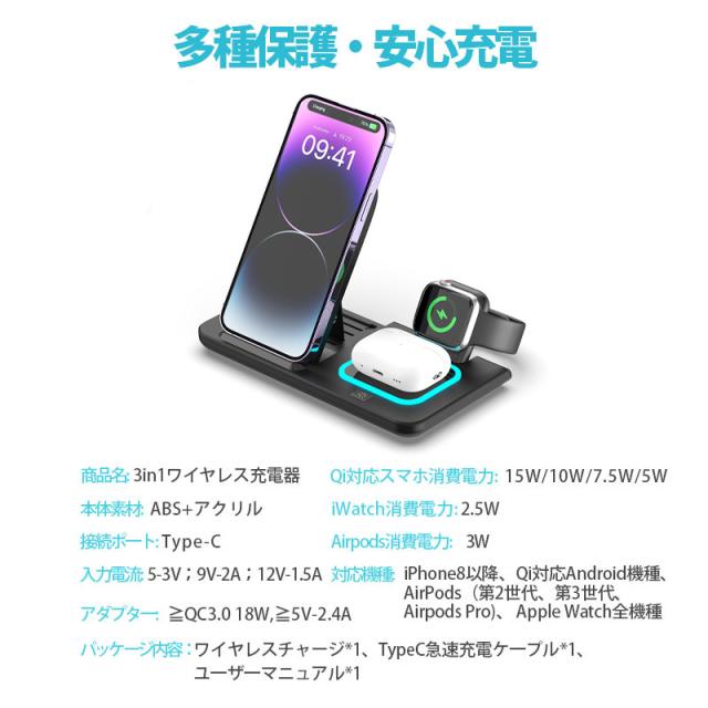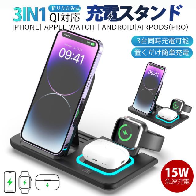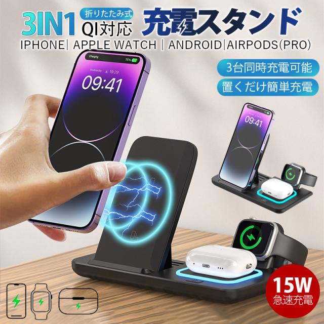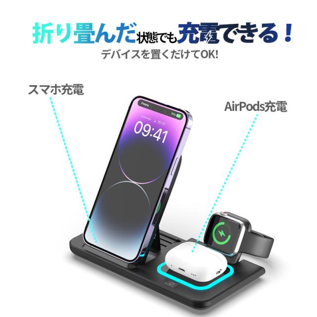 ワイヤレス充電器 3in1 MagSafe充電器 折り畳み式 マグネット式 スマホ 充電器 iphone 充電器 置くだけ 急速充