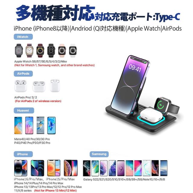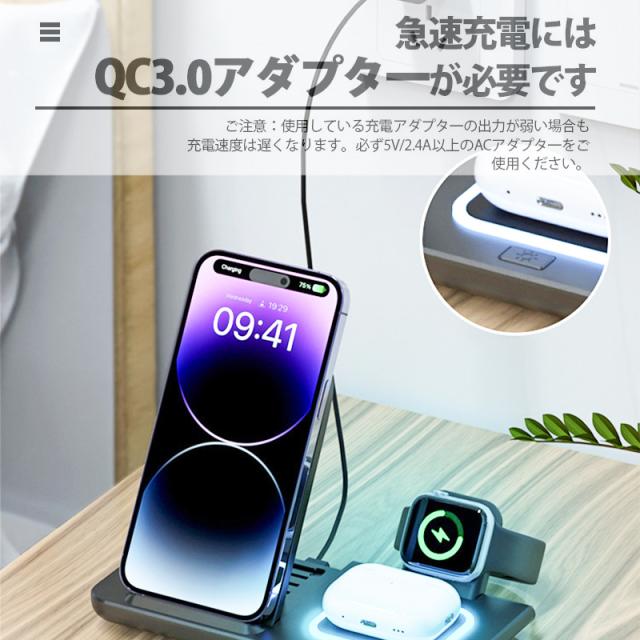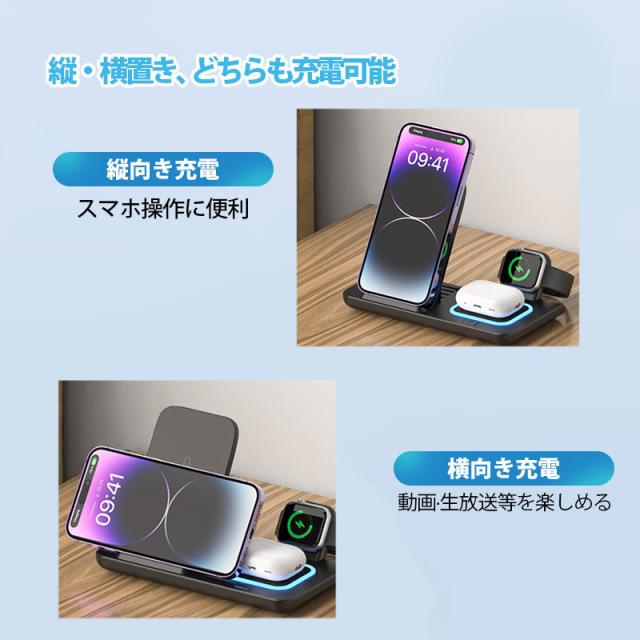 ◇最新型iPhone、Airpods、Apple Watch 三台同時充電でき、