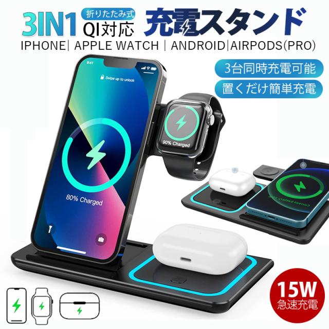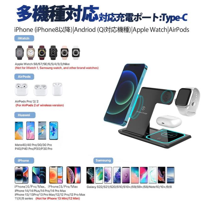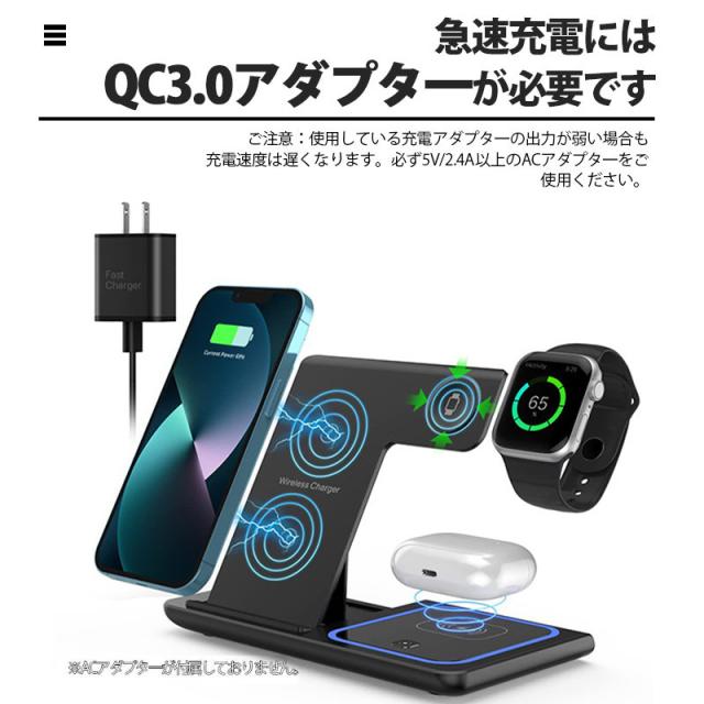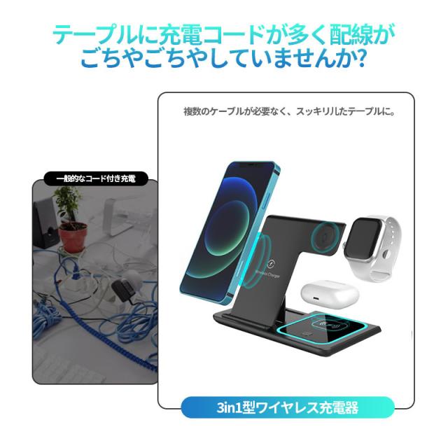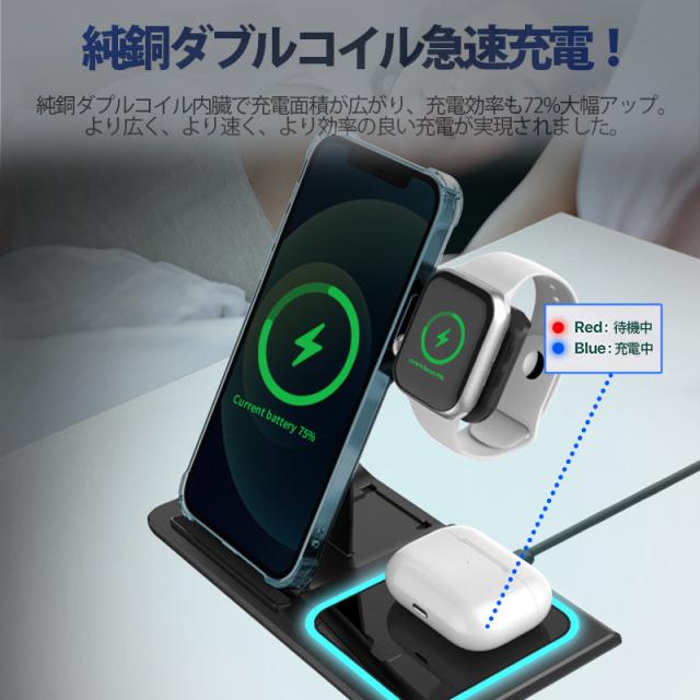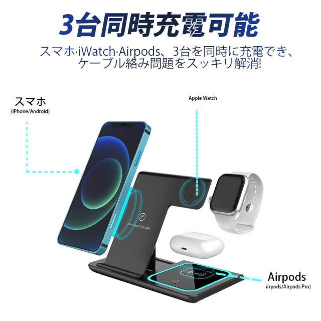◇最新型iPhone、Airpods、Apple Watch 三台同時充電でき、