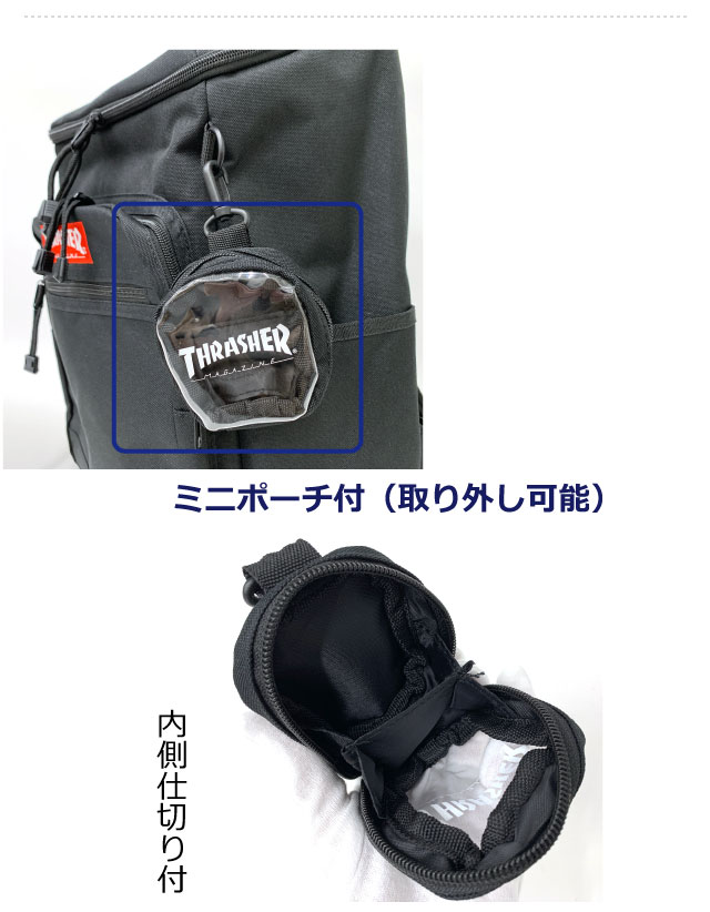 リュック 通学 男子 大きめ THRASHER スラッシャー カラーネーム スクエアリュック 31L ミニポーチ付き thb-0032 高校生 通学リュック 2ルーム 中学 大学生 大容量 黒 丈夫 おしゃれ 通学リュック 通学用 部活 サブバッグ a4 b4 人気 入学 新学期 修学旅行 林間学校 高学年