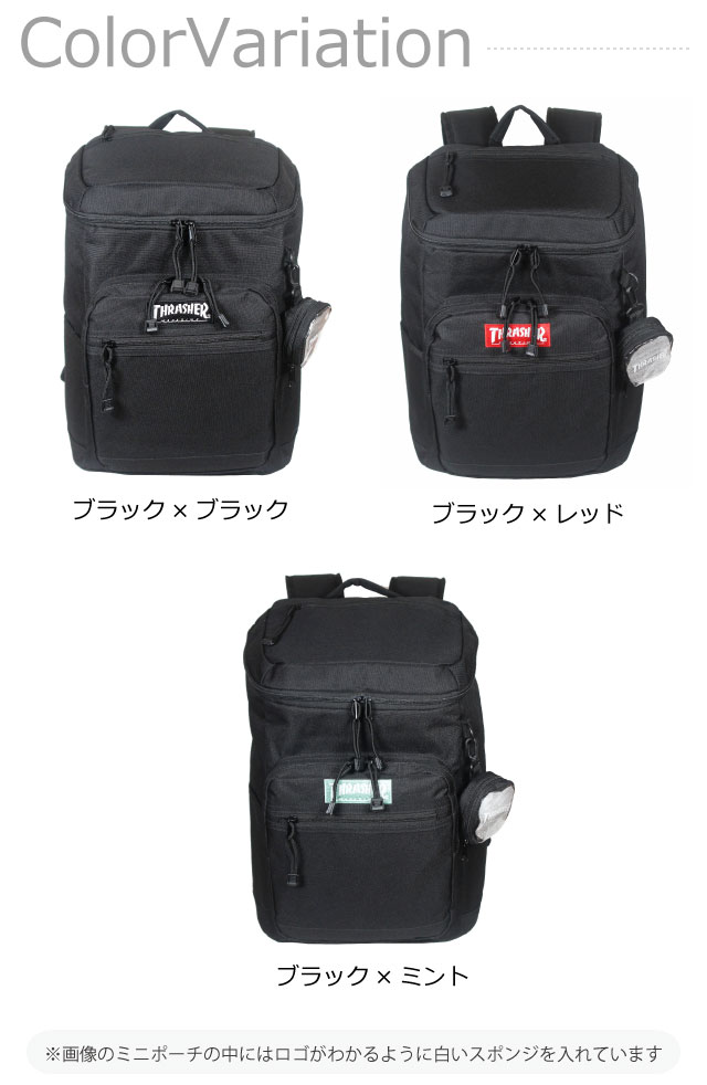 ■イメージ・その他:おしゃれ カジュアル お洒落 かっこいい かわいい 可愛い 通販 楽天 おすすめ 人気 売れ筋 ブランド ストリートブランド THRASHER スラッシャー 黒 ブラック 緑 グリーン レッド ボックスロゴ ロゴ 通塾 部活 塾リュック 通学用リュック 入学準備 入学グッズ 新学期 大容量 B4サイズ a4サイズ ミニポーチ付き