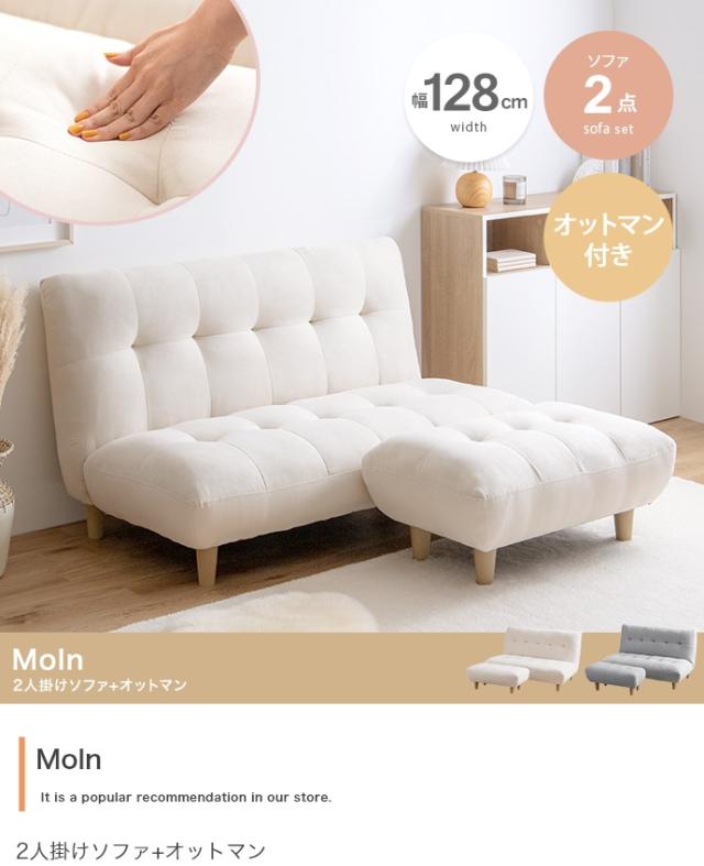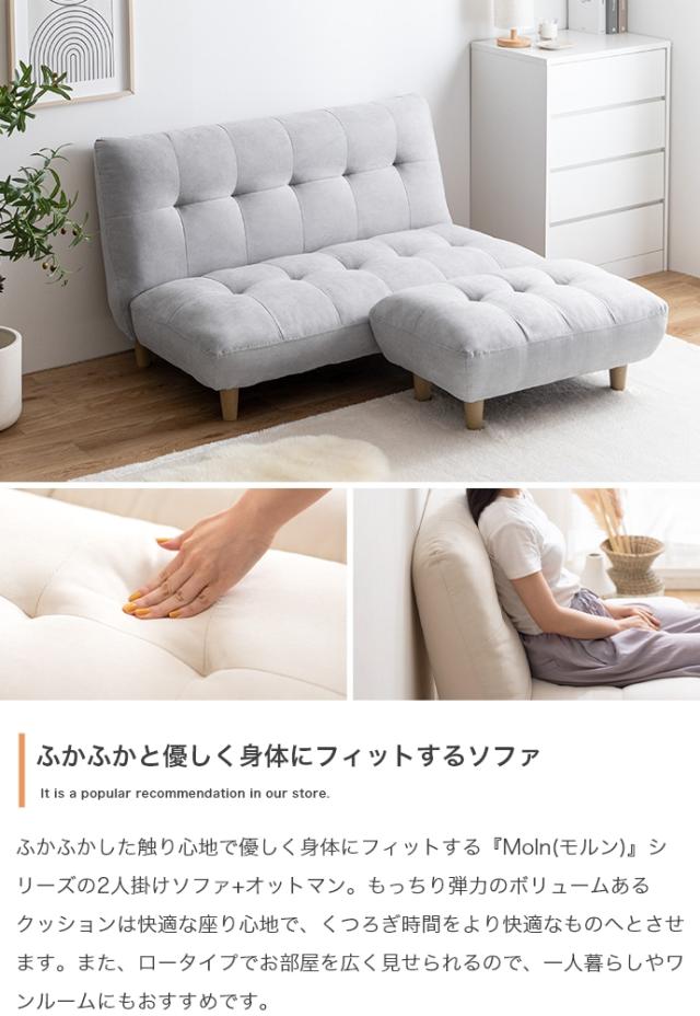 2人掛けソファ コンパクト オットマン スツール 足置き 2Pソファ ソファ 2人掛け 2人掛けソファー ソファー ローソファ ロータイプ おしゃれ シンプル かわいい 北欧 姫系 Moln(モルン) オットマンセット 幅128cm 2色対応