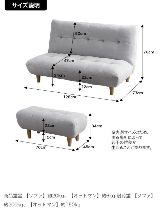【ソファ】W128 x D77 x H76 x SH34cm