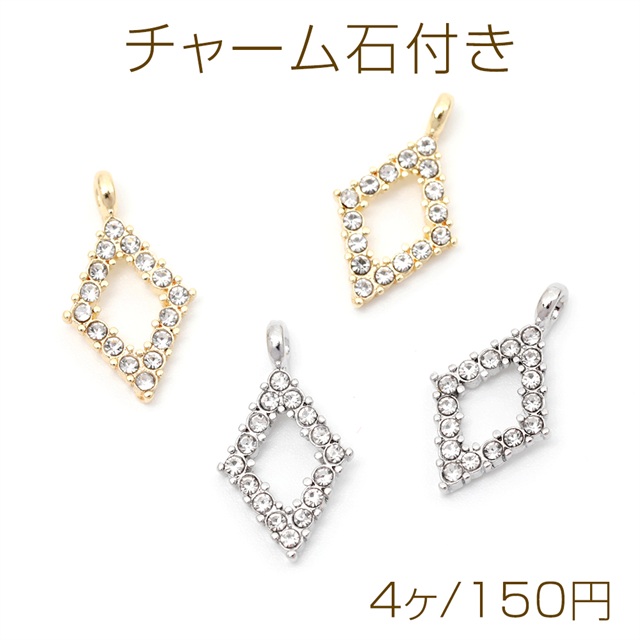 ラインストーンチャーム 石付きチャーム 菱型 合金製 カン付き 約9×16mm(4ヶ)
