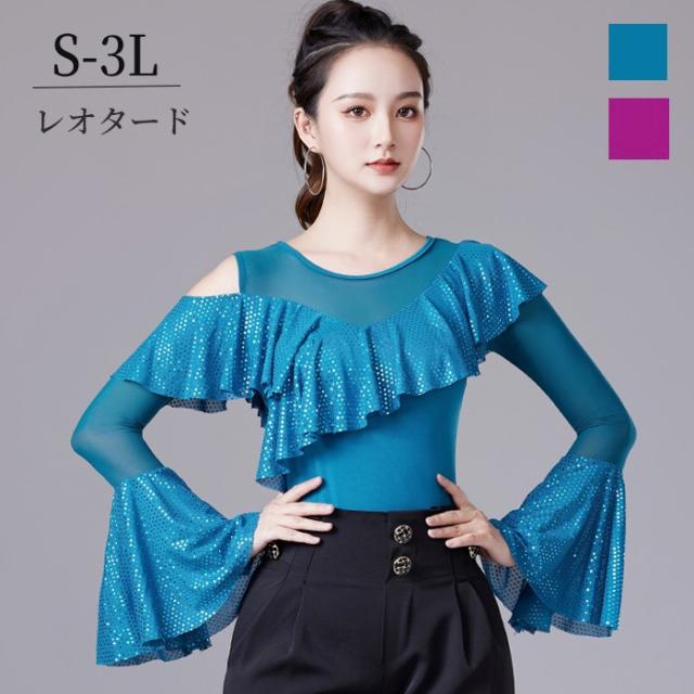 社交ダンス トップス レオタード 社交ダンス衣装 パープル ブルー ダンス用シャツ 長袖 ダンストップス 社交ダンストップス ラテンダンス ダンスウェア 練習着 カラオケ衣装 大きいサイズ