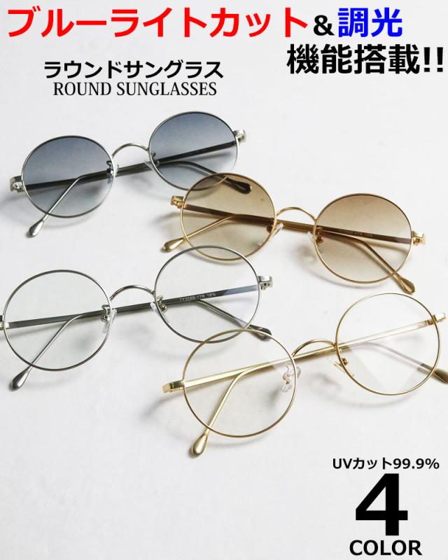 高機能 調光 サングラス ブルーライトカット メガネ 伊達メガネ ラウンド 丸メガネ メタルフレーム UVカット メンズ レディース 度なし眼鏡 パソコン スマホ 運転用 ドライブ アウトドア PC眼鏡 PCメガネ