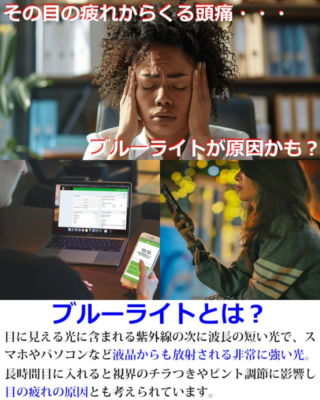 パソコンやスマートフォン・液晶画面から発せられる光に含まれる目の奥にまで届く、長時間目に入れてしまうと目の疲れの原因になるとも考えられている非常に強い光りブルーライト。