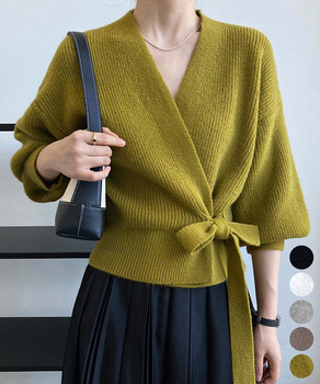 もっちりと柔らかな微起毛素材で、着た瞬間から暖かさを感じるニットトップス。