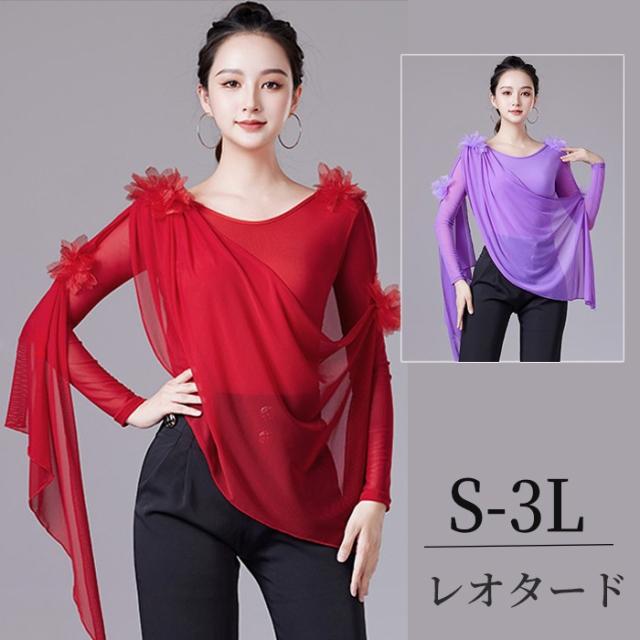 社交ダンス トップス レオタード 社交ダンス衣装 パープル レッド ダンス用シャツ フリル 長袖 ダンストップス 社交ダンストップス ラテンダンス ダンスウェア 練習着 カラオケ衣装 大きいサイズ レッスンウェア d1387d7d7x7 d1387d7
