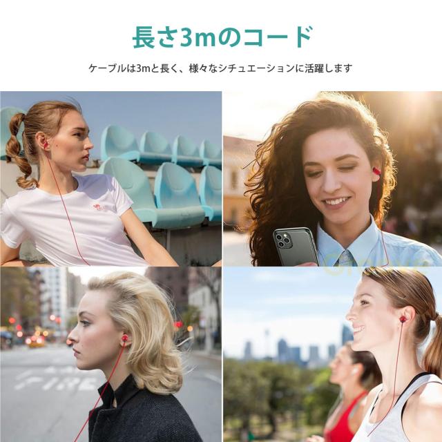 イヤホン カナル型 有線 3.5mm プラグ 3メートル ステレオ 両耳用 コードが長い イヤフォン TV テレビ スマホ タブレット パソコン