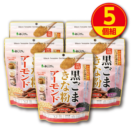 味源 黒ごまきな粉アーモンド 300g 新登場 5個組 チャック袋仕様 保存料・香料・着色料不使用 ゴマ 胡麻 きなこ セサミン 大豆イソフラボン 食物繊維 カルシウム 鉄分 ビタミンE ビタミンB1 健康 食品 あじげん