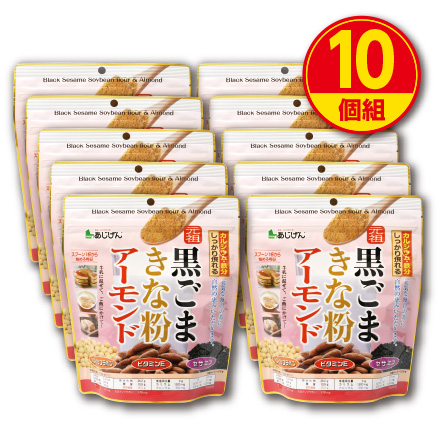 味源 黒ごまきな粉アーモンド 300g 新登場 送料無料 10個組 チャック袋仕様 保存料・香料・着色料不使用 ゴマ 胡麻 きなこ セサミン 大豆イソフラボン 食物繊維 カルシウム 鉄分 ビタミンE ビタミンB1 健康 食品 あじげん