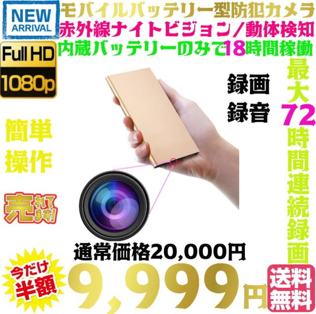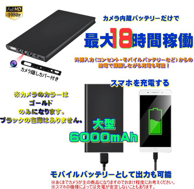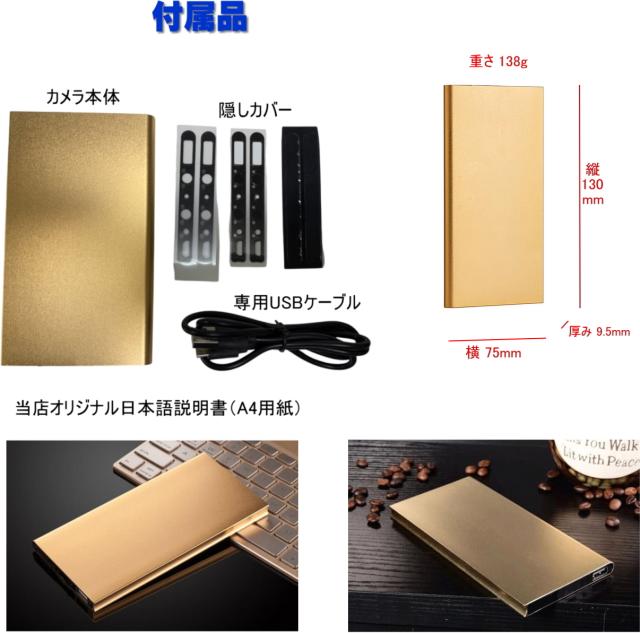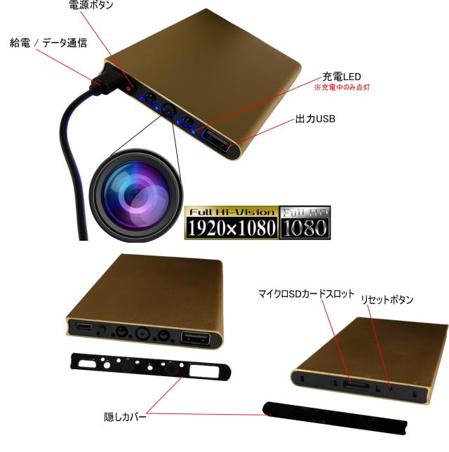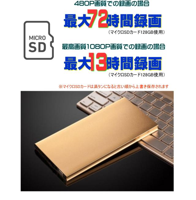 最新 正規品 TB-P1mb モバイルバッテリーカメラ 防犯 超 小型カメラ 72時間連続録画 動体検知 隠しカメラ 1080P画質 自動暗視 スパイカメラ ループ録画 マイクロSDカード 128GB対応 携帯便利 日本語取扱付き ゴールド