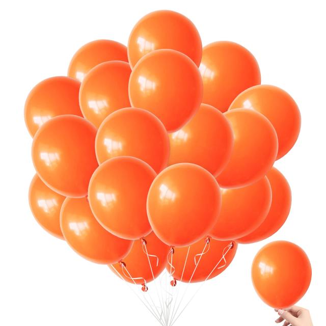 ■風船カラー:オレンジ(スタンダードカラー)/内容物 :50個入り(粘着シール3枚、リボン1巻)/サイズ:5インチ(13cm)/注:バルーンサイズが小さくて、ヘリウムガスを入れても浮きません。電動ポンプで膨らませない可能性がありますので、手動のハンドポンプでお勧めします。