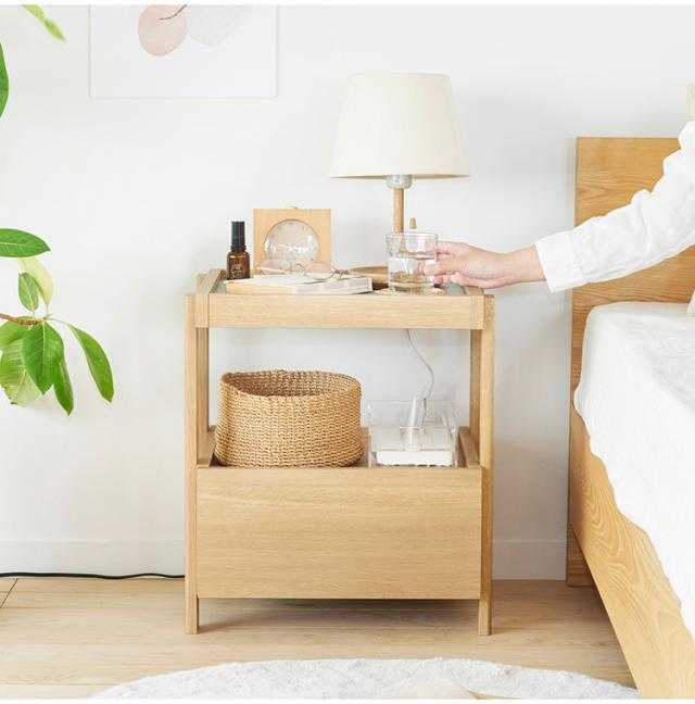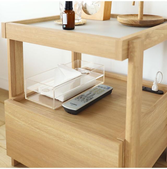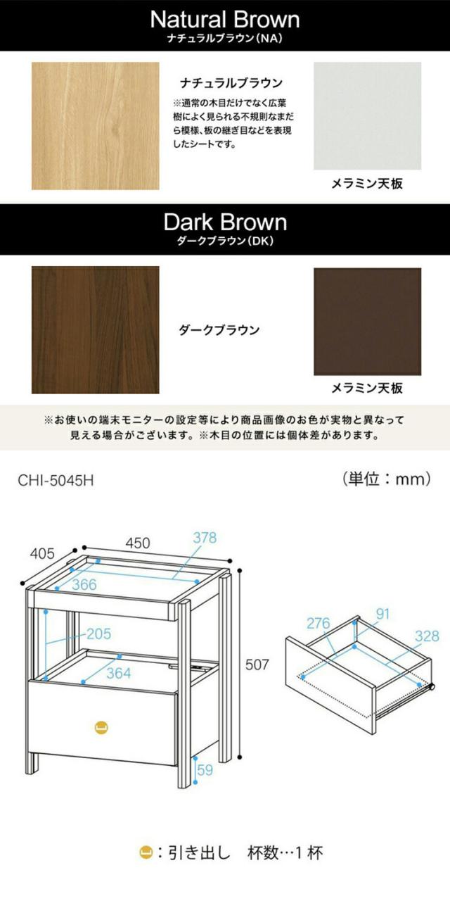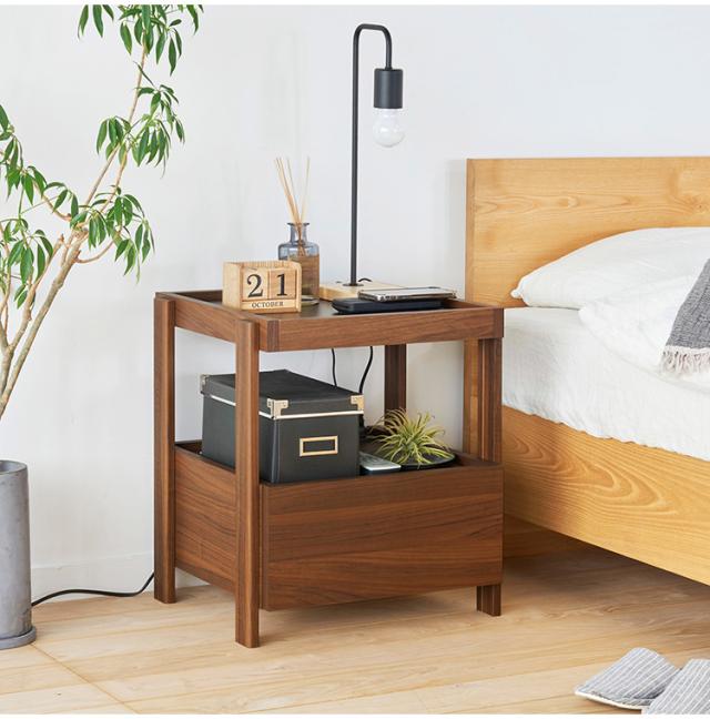サイドテーブル ナイトテーブル 幅45cm 高さ51cm ベッドサイド ソファサイド 引出付き コンセント付 メラミン天板 チルフィル CHI-5045H 白井産業 コンセント付き 2口コンセント ナチュラル ブラ