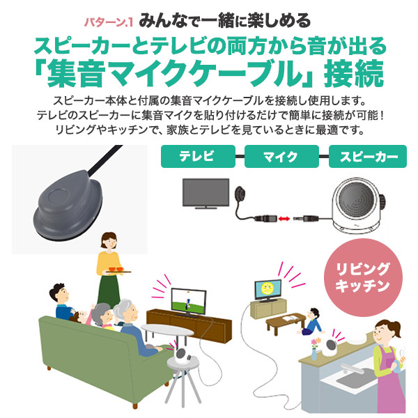 テレビ用集音スピーカー 【家族と一緒に快適な音量で楽しめる】 テレビとつなぐだけ テレビ スピーカー 電池式 有線接続 集音器 かんたん操作 手元スピーカー テレビの音 聞こえやすい シニア向け 高齢者 耳が遠い 深夜のテレビ 映画鑑賞 寝室 リビング 台所 キッチン