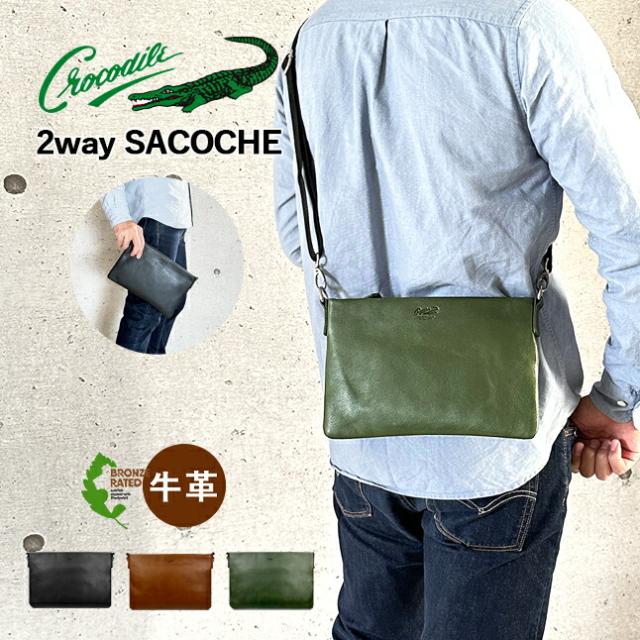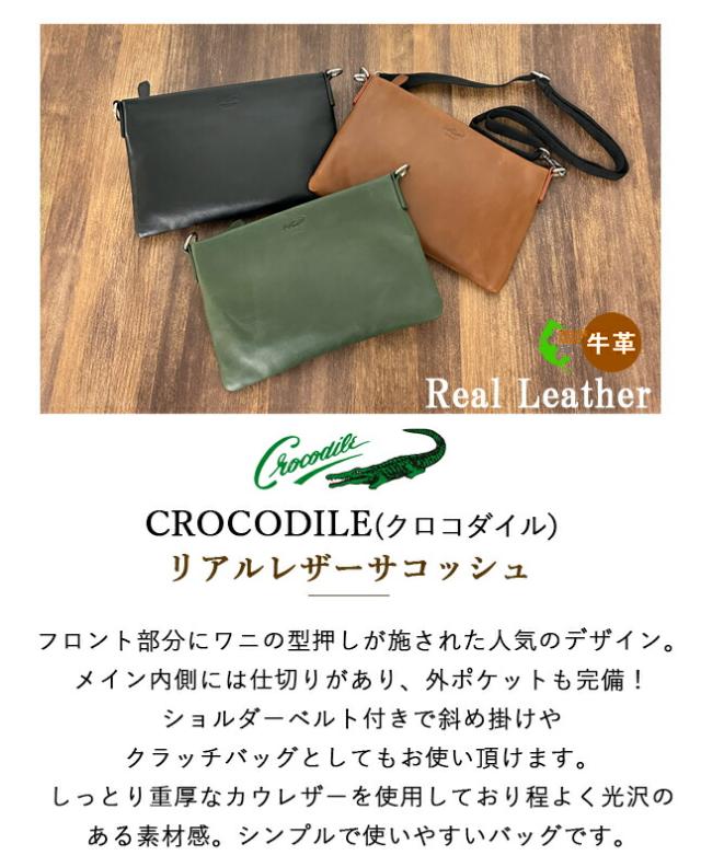 ショルダーバッグ メンズ レザー 本革 牛革 サコッシュ 斜め掛け 肩掛け ブランド 6cm086 CROCODILE クロコダイル リプロ リアルレザー 斜めがけ セカンドバッグ クラッチバッグ 2way シンプル コンパクト ポーチ A5 カジュアル かっこいい おしゃれ 人気 男子 男性 旅行 黒
