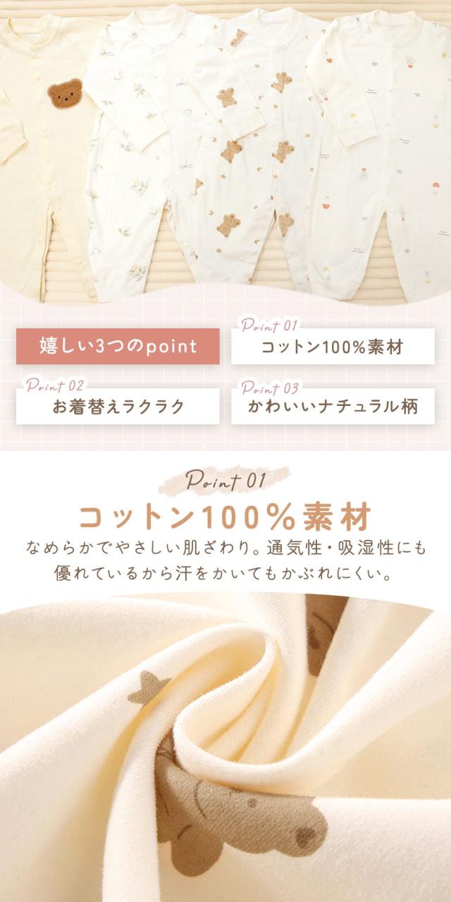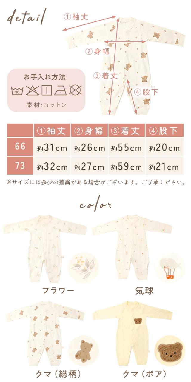 ロンパース 前開き ベビー 長袖 冬 カバーオール 上下 男の子 女の子 綿 コットン100% ベビー服 66 73cm フロントボタン かわいい 足つき 長ズボン お昼寝 パジャマ 部屋着 お出かけ 出産祝い 退院着 子供服 赤ちゃん シンプル 贈り物 プレゼント 秋服 新生児 幼児 韓国