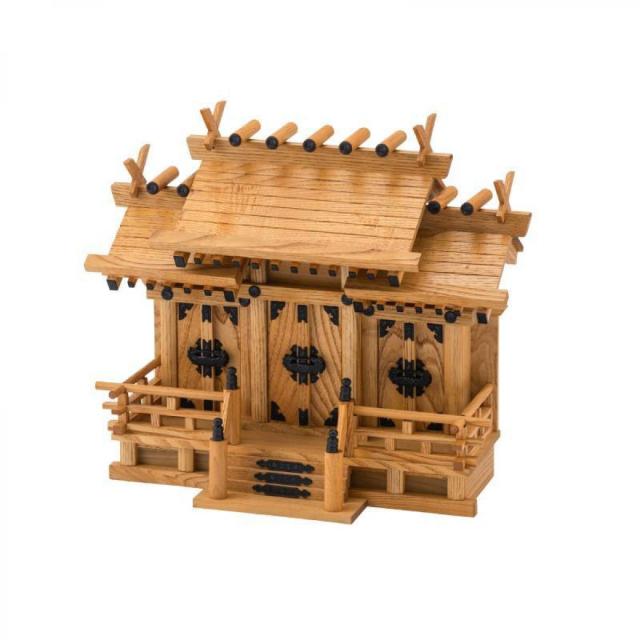 ◇静岡木工 神棚の里 屋根違い三社 けやき色(小)