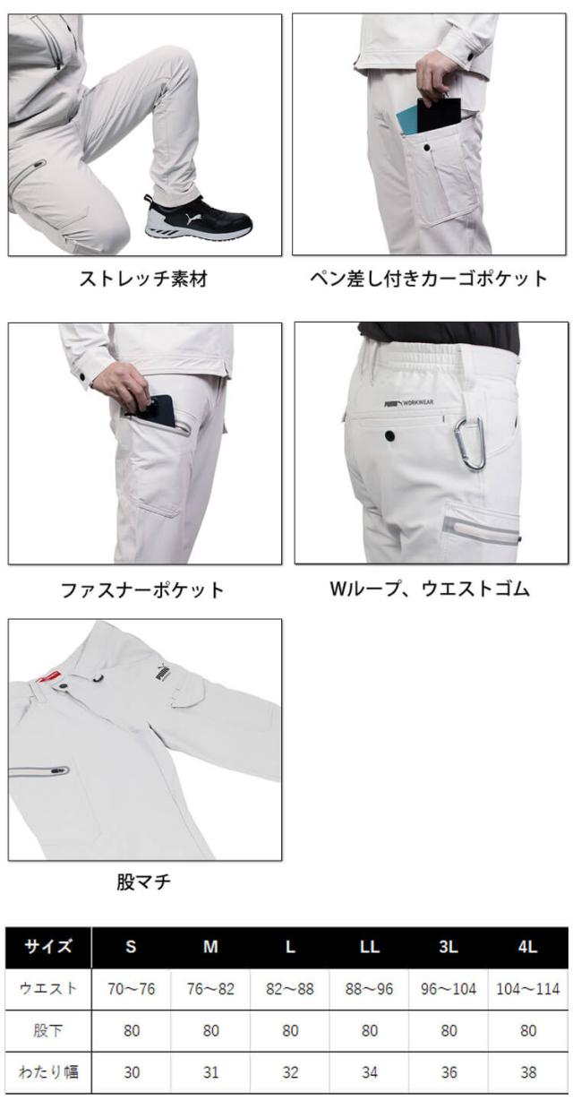 作業服 PUMA プーマ カーゴパンツ PA-3025A 4WAYストレッチ 通年