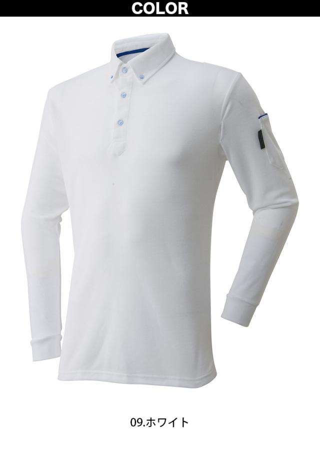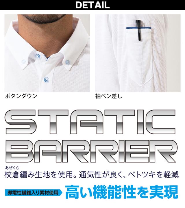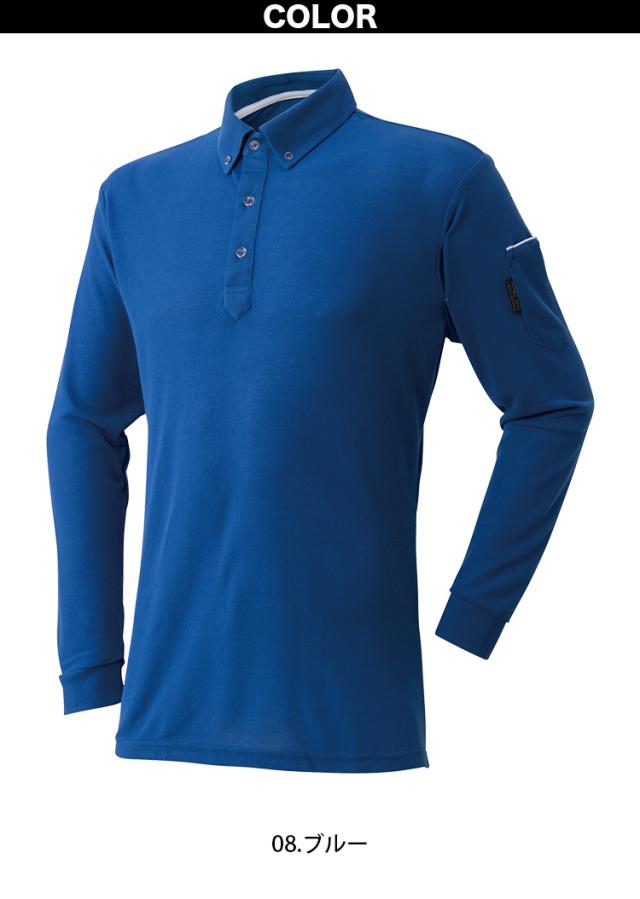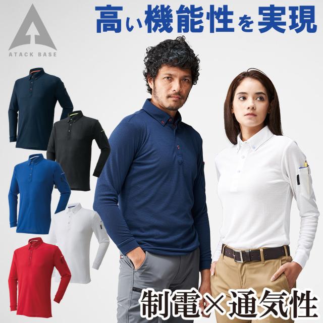 アタックベース 制電長袖ポロシャツ 60015 SS〜3L ボタンダウン 制電 吸汗速乾 消臭テープ 帯電防止 細身 校倉構造 カジュアル 通年 作業服 作業着 メンズ ATACK BASE