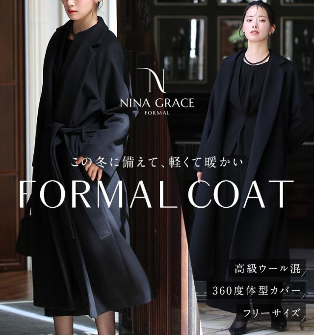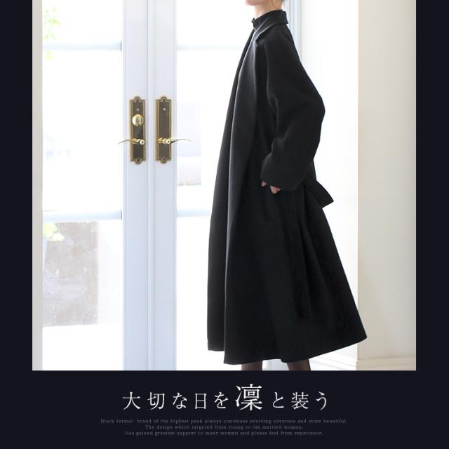[フォーマル コート レディース 黒 ウール ブラックフォーマル ゆったり 体型カバー ロング ロング丈 大きいサイズ 30代 40代 50代 ガウンコート Aライン きれいめ 防寒 喪服 礼服 女性用 ママ 母 入園式 入学式 卒園式 卒業式 秋 冬 フリーサイズ 無地 NGR-FC8360 送料無料]