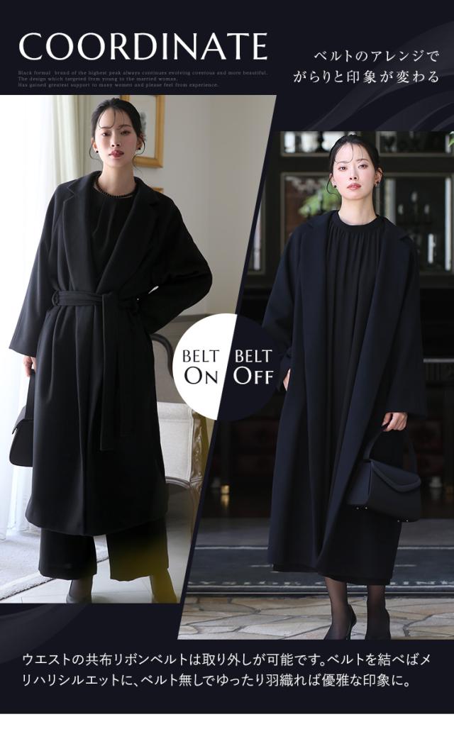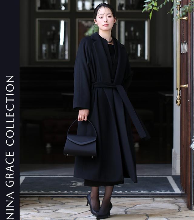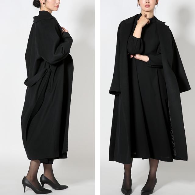 【相武紗季さん ドラマ着用】 フォーマル コート レディース 黒 ウール ブラックフォーマル ゆったり 体型カバー ロング ロング丈 大きいサイズ 30代 40代 50代 ガウンコート 防寒 喪服 礼服 女性用 入園式 入学式 卒園式 卒業式 秋 冬 フリーサイズ NGR-FC8360 送料無料