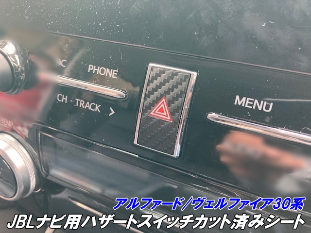 アルファード/ヴェルファイア 30系 JBLナビ専用ハザードスイッチ カット済みシート カーボン柄カラー選択式 内装 キズ防止 指紋低減保護 カスタムパーツ