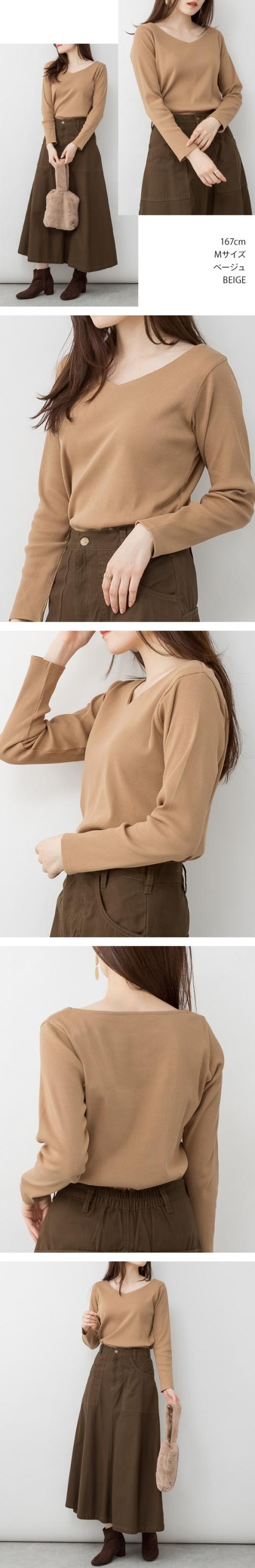 【月初SALE】冬新作 大きいサイズ レディース 2×2リブVネックカットソー トップス Tシャツ 長袖 ロンT カットソー 春夏秋冬 M L LL 3L 4L