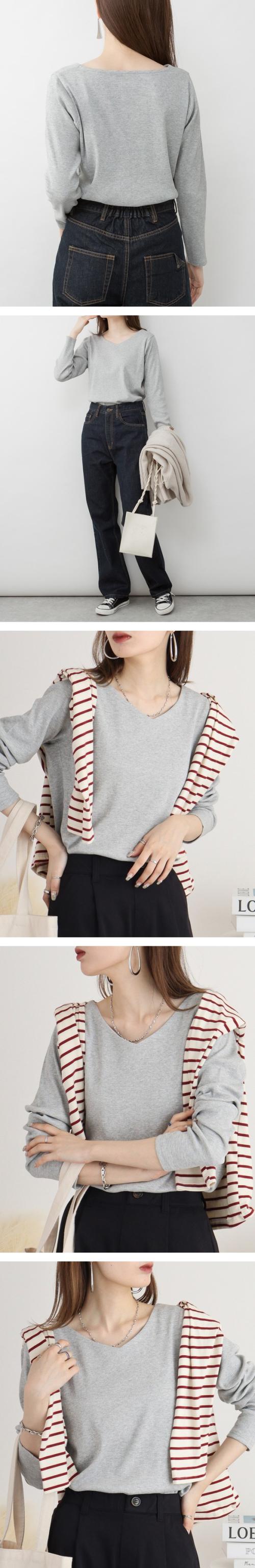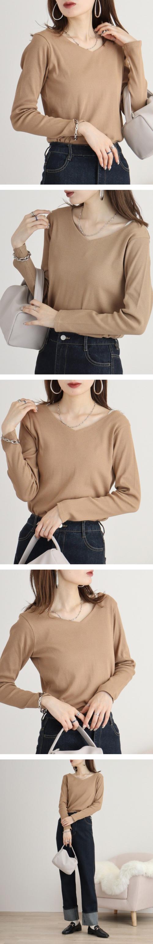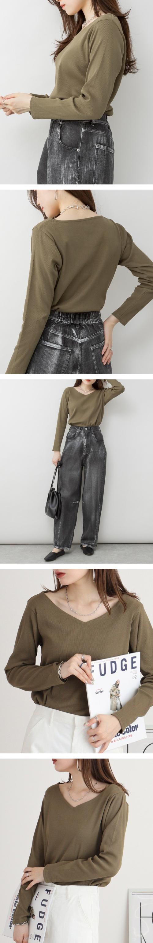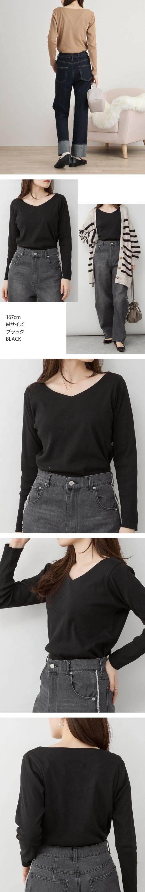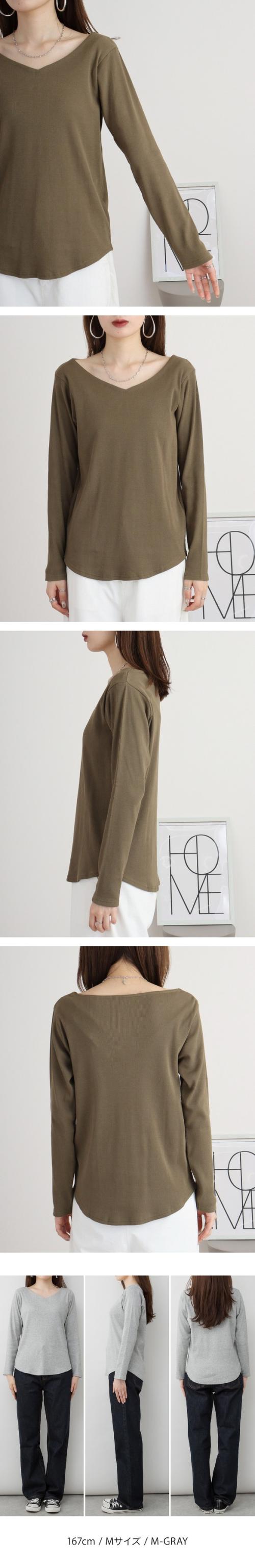 2×2リブ編みのVネックカットソーです。