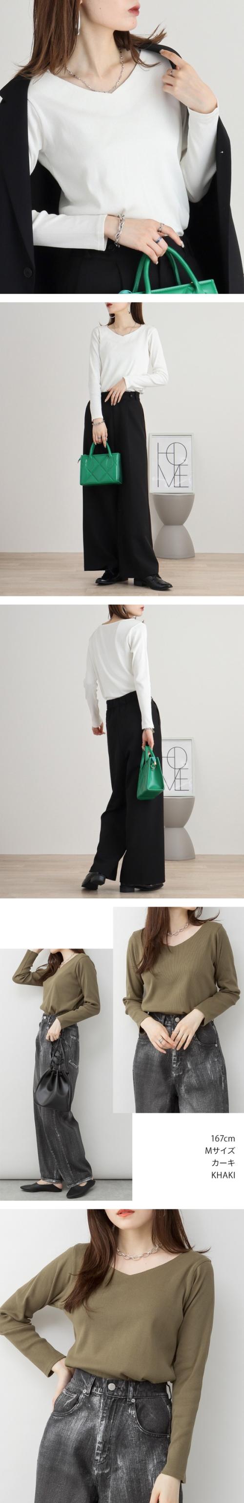 | こちらのVネックカットソーは、シンプルながらもエレガントな印象を与えるアイテムです♪ すっきりとしたVネックデザインが、デコルテを美しく見せ、フェミニンな雰囲気を演出します。伸縮性のある素材で、着心地も抜群!デイリーユースにもおすすめです。 デニムと合わせると、カジュアルでこなれたスタイルに仕上がります♪ スニーカーやローファーでカジュアルにまとめつつ、小物でアクセントをつけると一段とおしゃれになります。また、ジャケットやカーディガンを羽織れば、季節の変わり目にも対応可能です。 一方、スカートと組み合わせれば、女性らしいコーディネートが楽しめます。 フレアスカートやタイトスカートと合わせ、ヒールやブーツを履けば、デートやお出かけにぴったりの上品なスタイルが完成します。 |