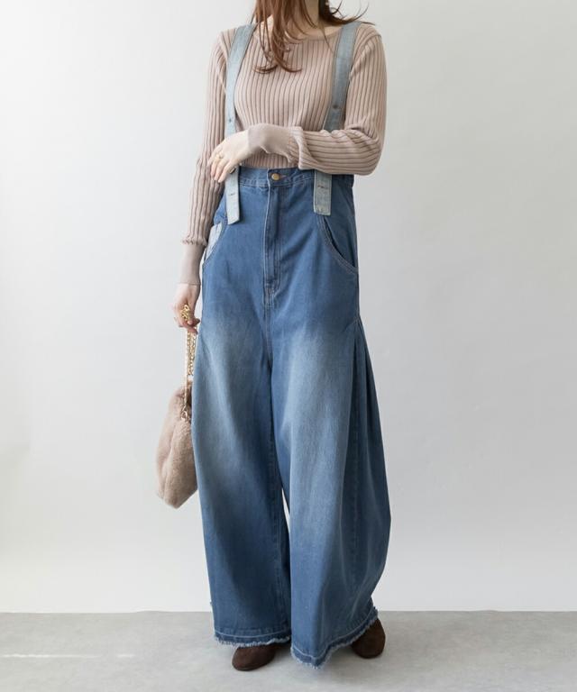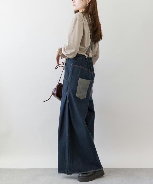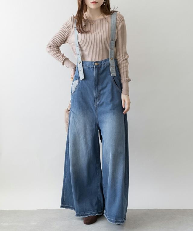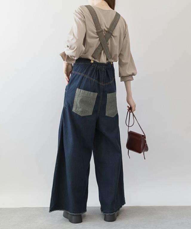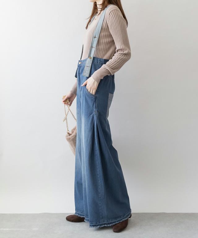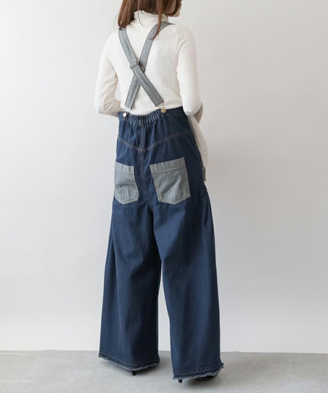 デニムの裏地をデザインポイントとしたデニムバギーハイウエストパンツ。