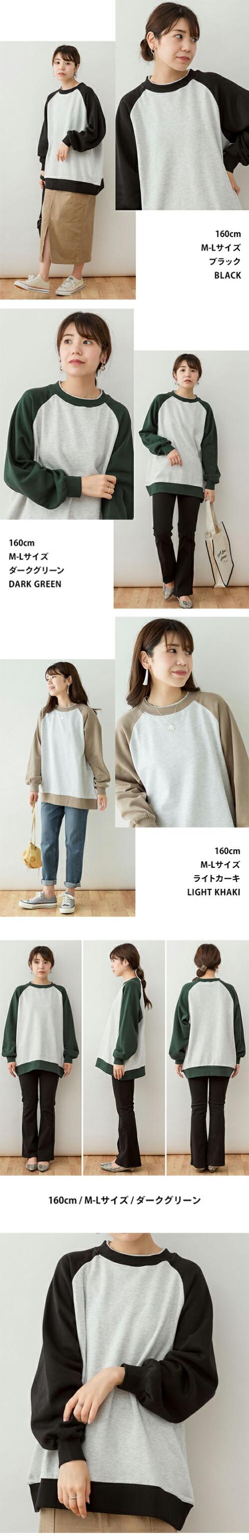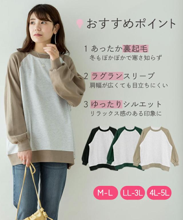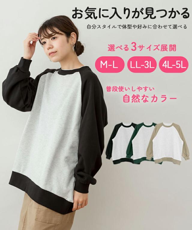 春新作 裏起毛オーバーサイズラグラントレーナー レディース 大きいサイズ M L LL 3L 4L5L 黒 カーキ グリーン