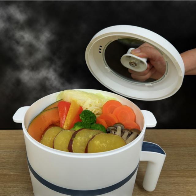 マグカップ式電気鍋 1.5L DAPN-OMC-CKEP01 蒸し器・保温機能付 1〜2人用鍋