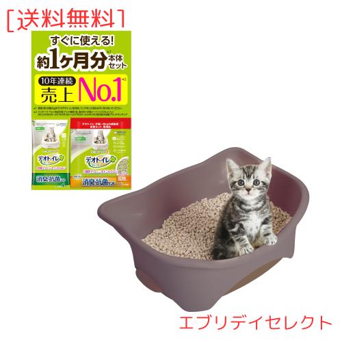 デオトイレ本体セット [約1か月分 猫砂・シート付] 猫用トイレ本体 子猫~5kgの成猫用 ツートンブラウン
