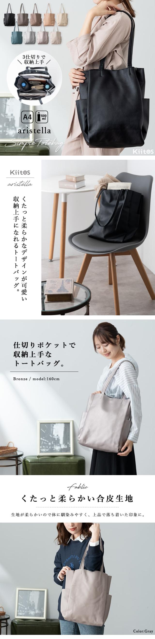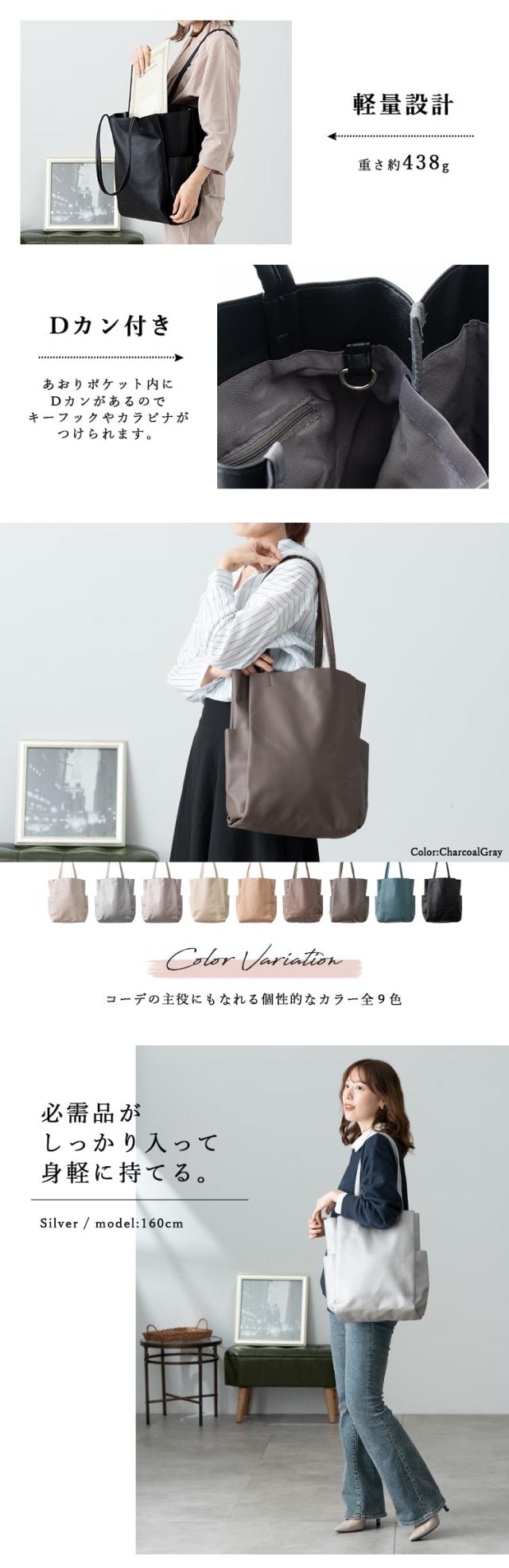 くたっと感のある柔らかな合皮素材で体にフィットするトートバッグ。