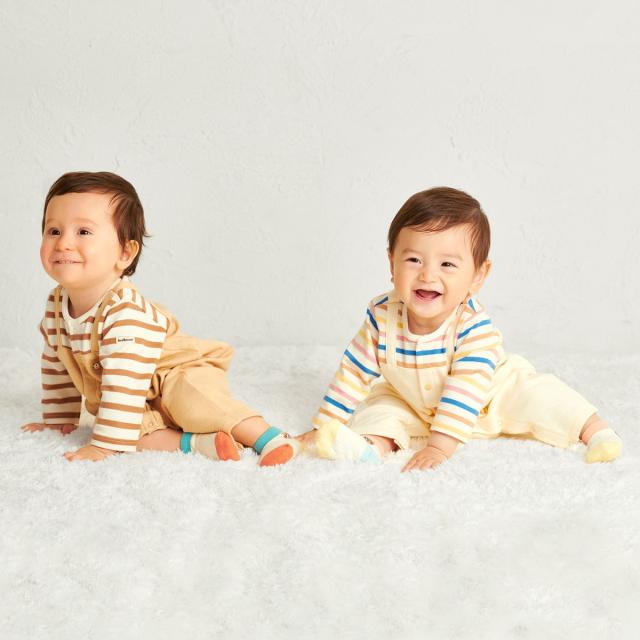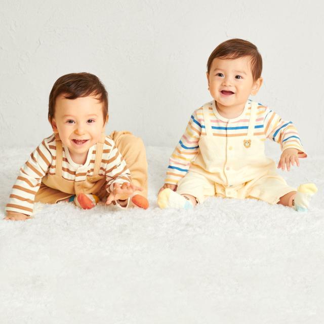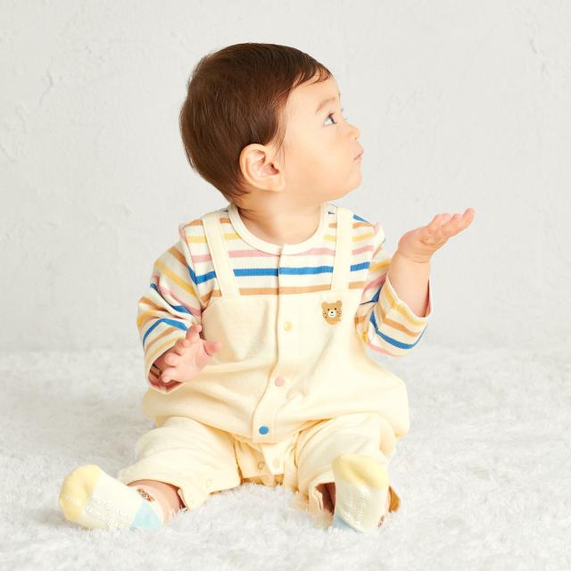 ミキハウス ホットビスケッツ(MIKIHOUSE HOT BISCUITS)/ボーダー柄 重ね着風 カバーオール