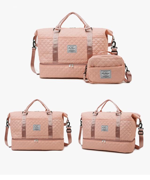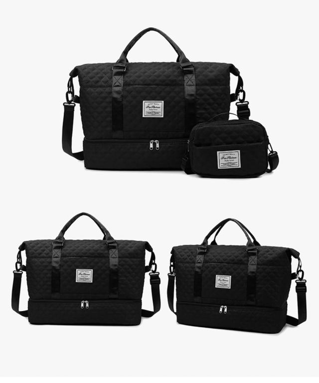 ボストンバッグには1〜2泊程度の荷物、ショルダーバッグには化粧道具やスマホ、お財布などをたっぷり収納して持ち運べる