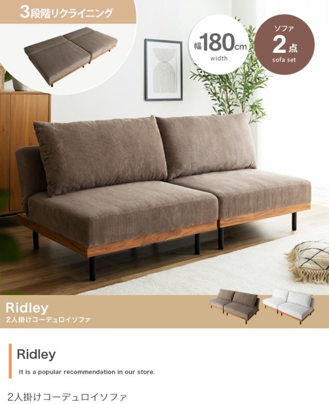 ソファ 二人掛け 二人用 二人 リクライニングソファ コーデュロイソファ 2人掛けソファ ローソファ リクライニングソファー おしゃれ シンプル ナチュラル 北欧 脚取り外し Ridley(リドリー) 2点セット 幅90cm 2色対応