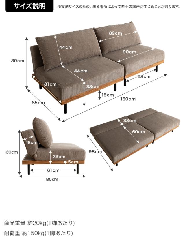 W180(90cm+90cm) x D98 x H80 x SH38cm