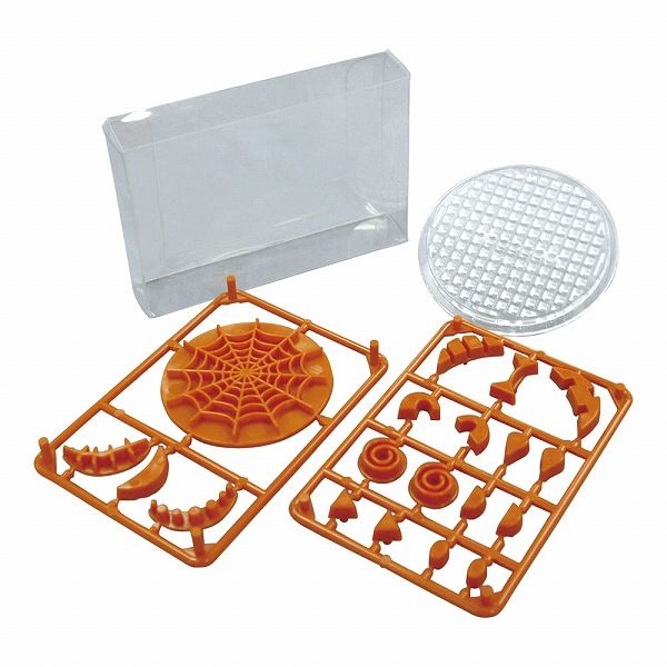 スタンプ台にパーツを差し込み、型で抜いたクッキー生地に押しつけるだけで、あっという間にお持ちの型がハロウィン仕様になります。