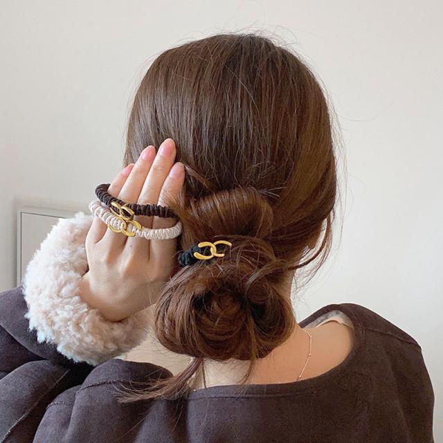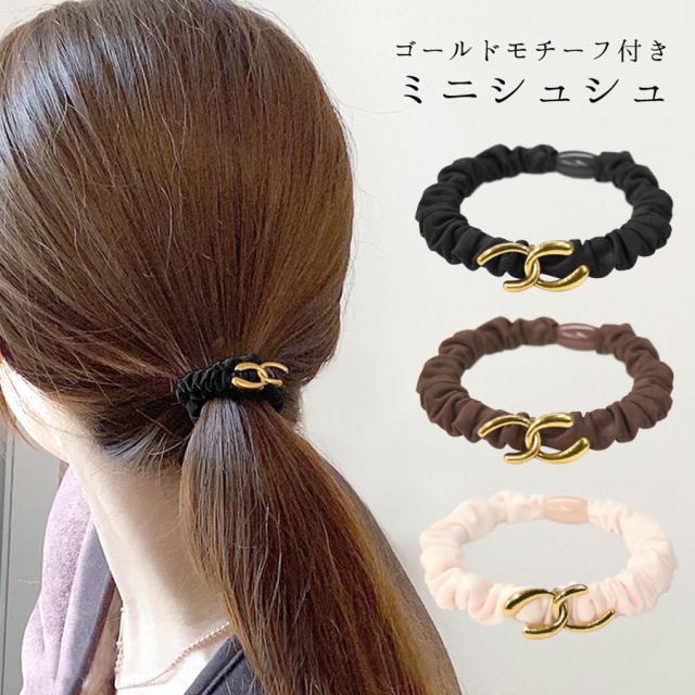 【ミニシュシュ ヘアポニー ヘアゴム シュシュ 華奢 細め ゴールド メタル モチーフ レディース ヘアアクセサリー クロス スリム お洒落 ブレスレット シンプル 大人 可愛い ミニ 小さめ 韓国風 金】