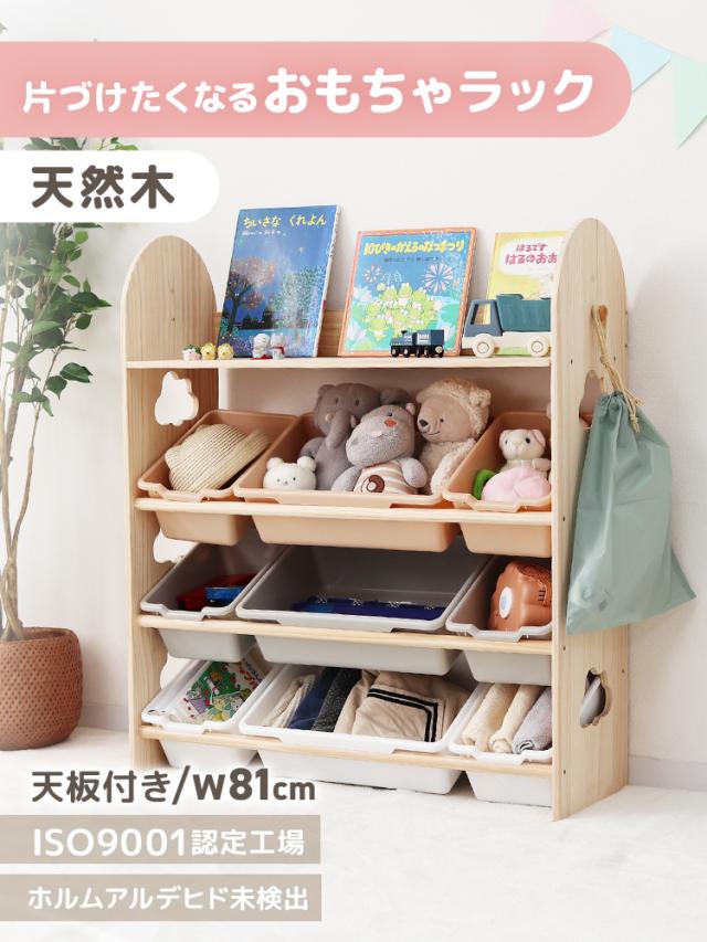 おもちゃ収納ラック 天然木 幅81 片付けたくなる おもちゃラック 収納 棚 ラック おもちゃ 安全 収納ラック おもちゃ箱 木製 ナチュラル 片付け ボックス 9個セット 斜め 見えやすい おもちゃ収納 子供部屋 大容量 おしゃれ 絵本棚 おもちゃ収納ボックス 送料無料