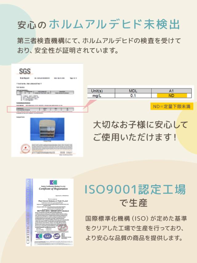 ホルムアルデヒド未検出、ISO9001認定工場生産で安心安全。