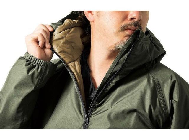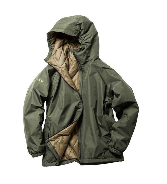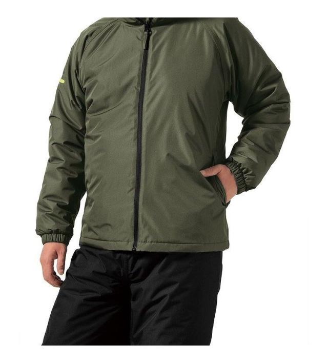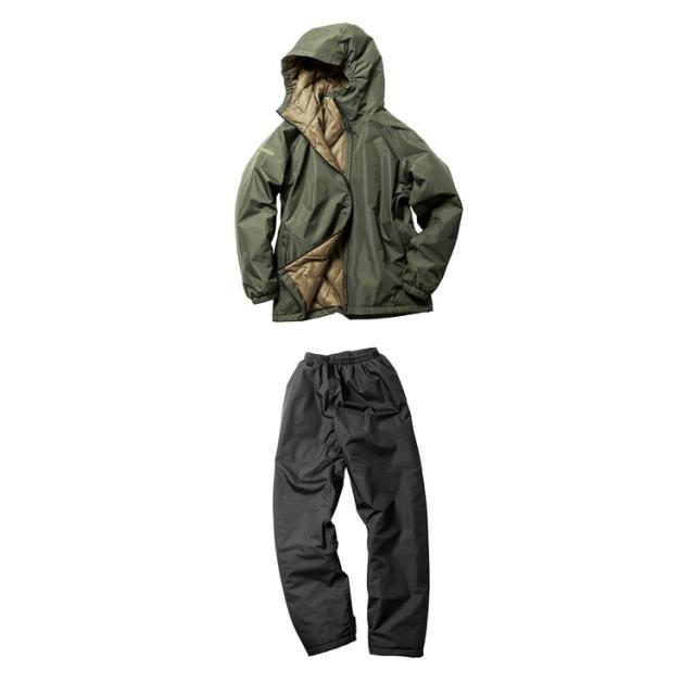 ●軽くて薄くてもしっかり暖かい中綿入り防水防寒ウェア。●上下セット。●耐水圧10,000mmH2O。●防風。●フードは丸めて収納可能。●襟部分は中綿増量。●右袖蛍光反射プリント。●サイズ:EL●素材:表地/ポリエステル100%(熱可塑性ポリウレタンラミネート)、中綿/ポリエステル100%、裏地/ポリエステル100%●カラー:カーキ×ブラック●生産国:ミャンマーミャンマーMakkuカーキ×ブラック